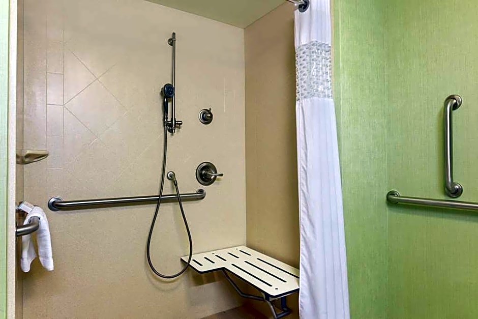 Any corresponding photo may not reflect the specific accessible room type or room feature. This mobility and hearing accessible, non-smoking room features one king-sized bed and an accessible roll-in shower. The room also has a visual alarm and notification devices for the doorbell or door knock and incoming phone calls. The room features comfortable soft seating, an HDTV and easy to operate alarm clock/radio. The free high-speed internet access will help you stay connected while on the road. If you prefer not to work at the desk, you can use the convenient lapdesk instead. You'll also enjoy the convenience of having a coffeemaker and an iron with ironing board in your room.